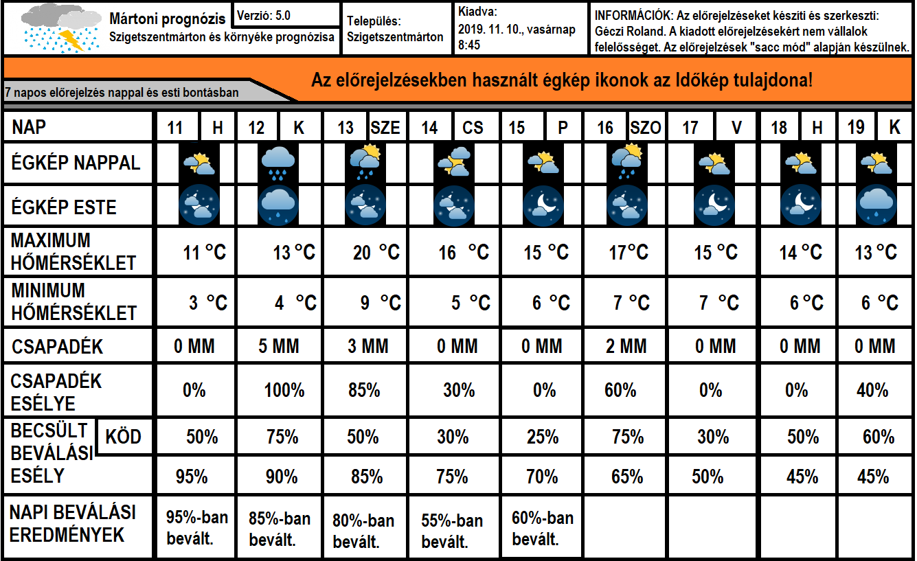 2019. 11. 10., vasárnap, 20:40-kor kiadott előrejelzés: