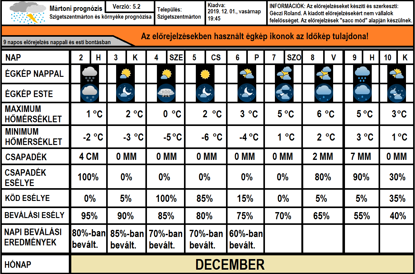 2019. 12. 01., vasárnap, 19:45-kor kiadott előrejelzés: